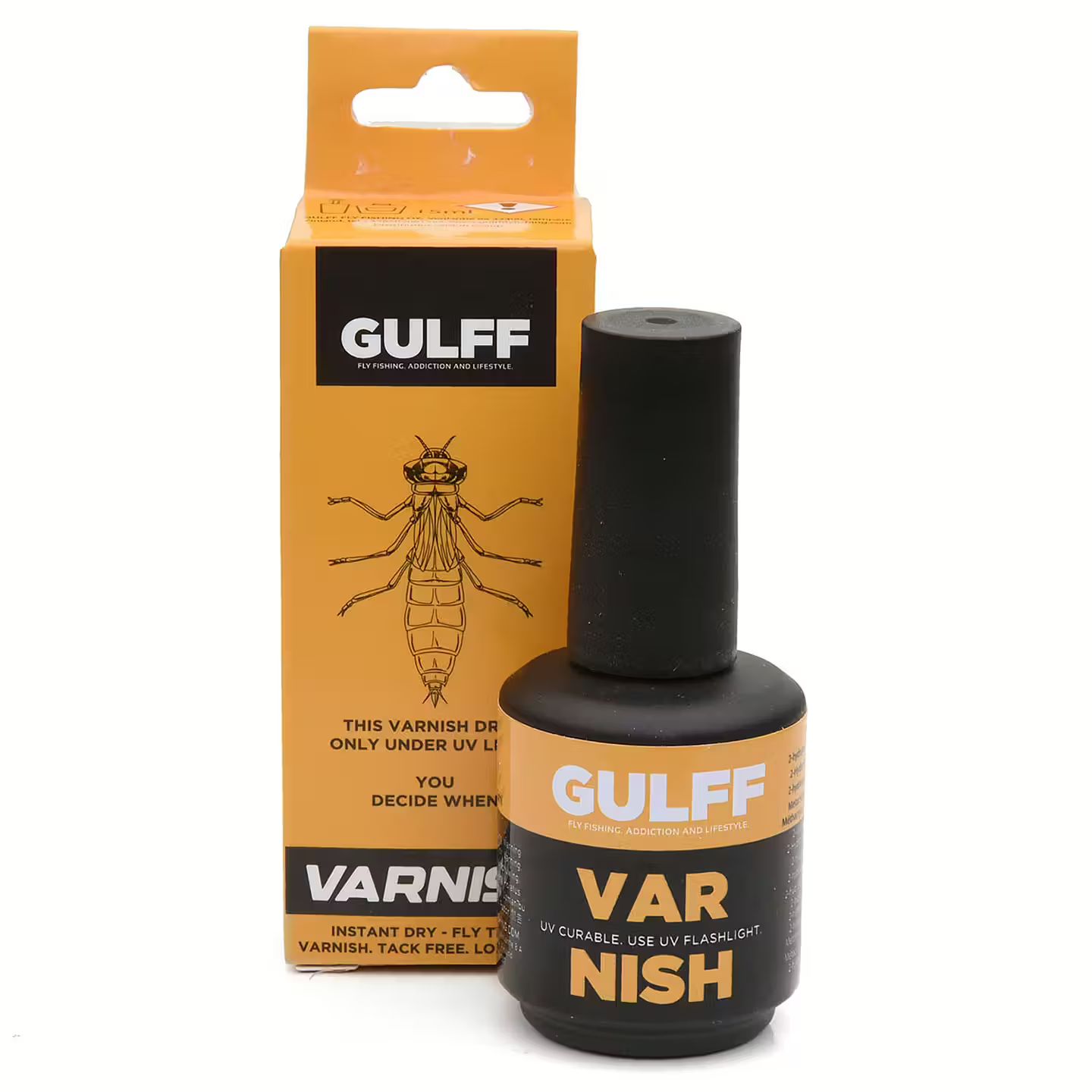 GULFF Varnish är ett innovativt, UV-härdbart lack som torkar omedelbart. Traditionell efterbehandling kan ta flera minuter, men med GULFF behöver du inte vänta. Det nästan luktfria lacket härdar på bara 3–4 sekunder när du belyser det med UV-ljus, vilket ger en kristallklar, klibbfri och slitstark finish. En praktisk pensel medföljer.