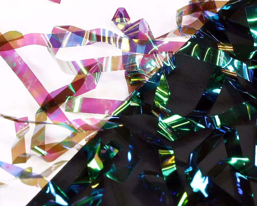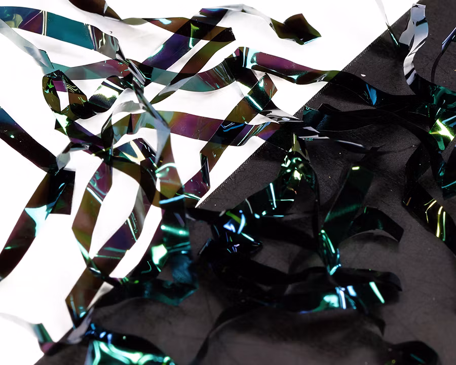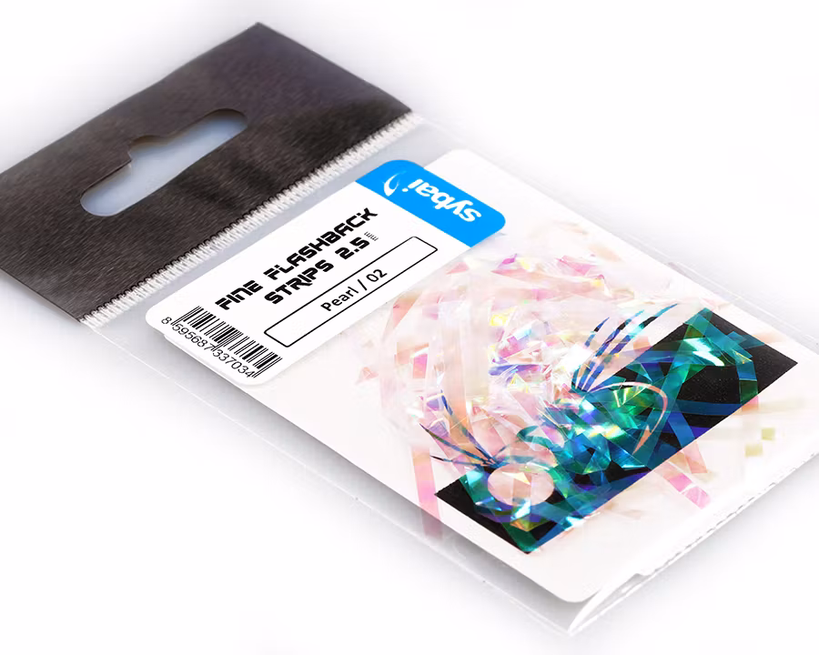 Mycket fina remsor, färgade i rika färger, är idealiska för nymfernas rygg, kropp och vinge. De ändrar färg när ljuset träffar dem från olika vinklar. De finns i bredden 2,5 mm, så du kan enkelt göra både små och större flugor. Förpackningen innehåller 15 remsor, var och en 10 cm lång.