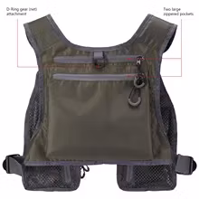 Andra funktioner inkluderar reflekterande ränder, ögla av kardborreband, spöhållare eller tillbehörsfästöglor, D-ring på baksidan för att fästa håv och hållare för flytmedel eller annat.