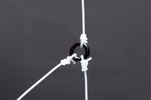 Tafskoppling: Knyt en mikroring till tafsens tafsögla; fäst sedan din tafs eller dropper direkt på ringen.